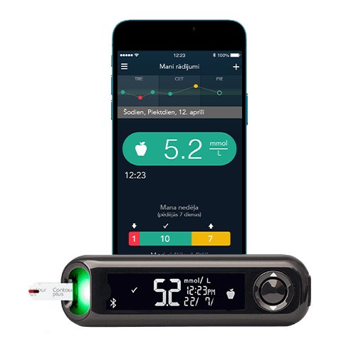 Bezmaksas lietotne CONTOUR®DIABETES ir pieejama kā palīglīdzeklis diabēta paškontrolē, kas ļauj gūt padziļinātus ieskatus par rezultātiem un to nozīmi.